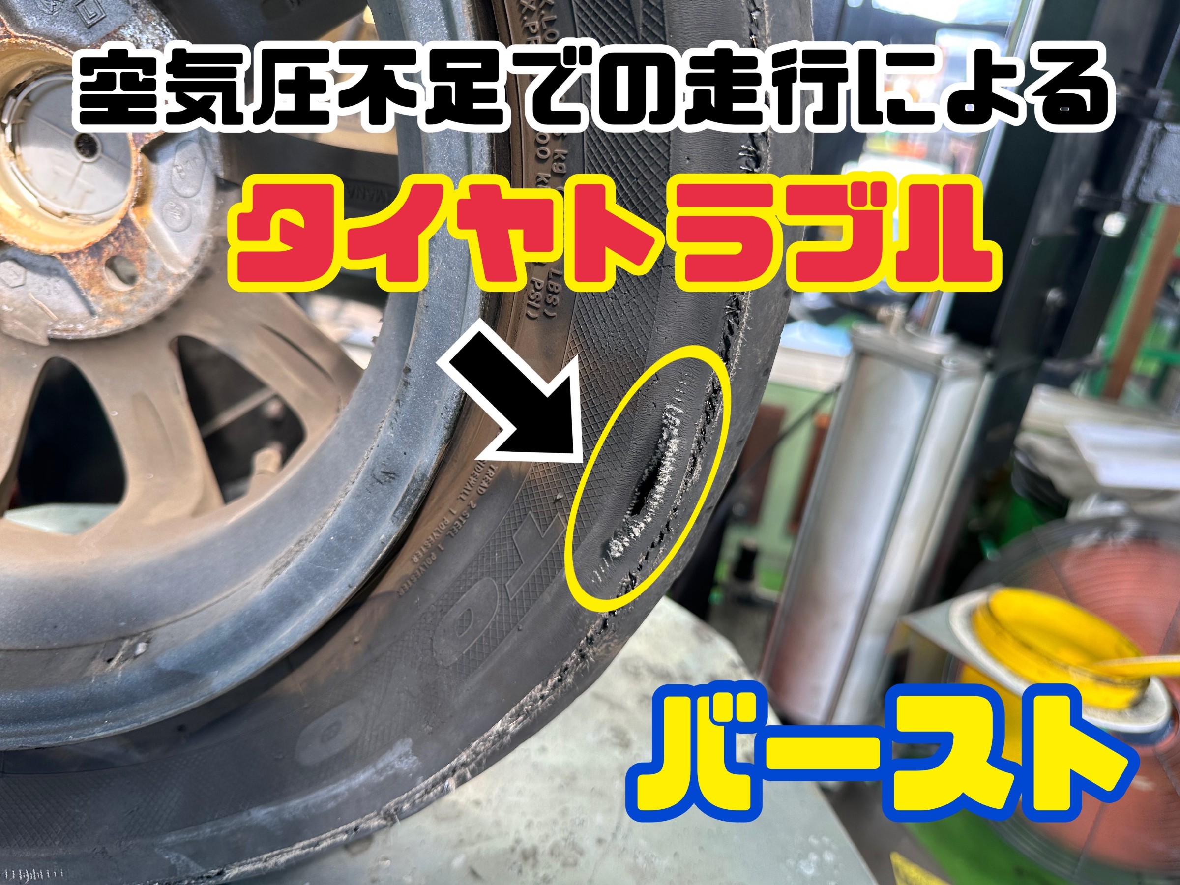 空気圧不足によるタイヤトラブル‼