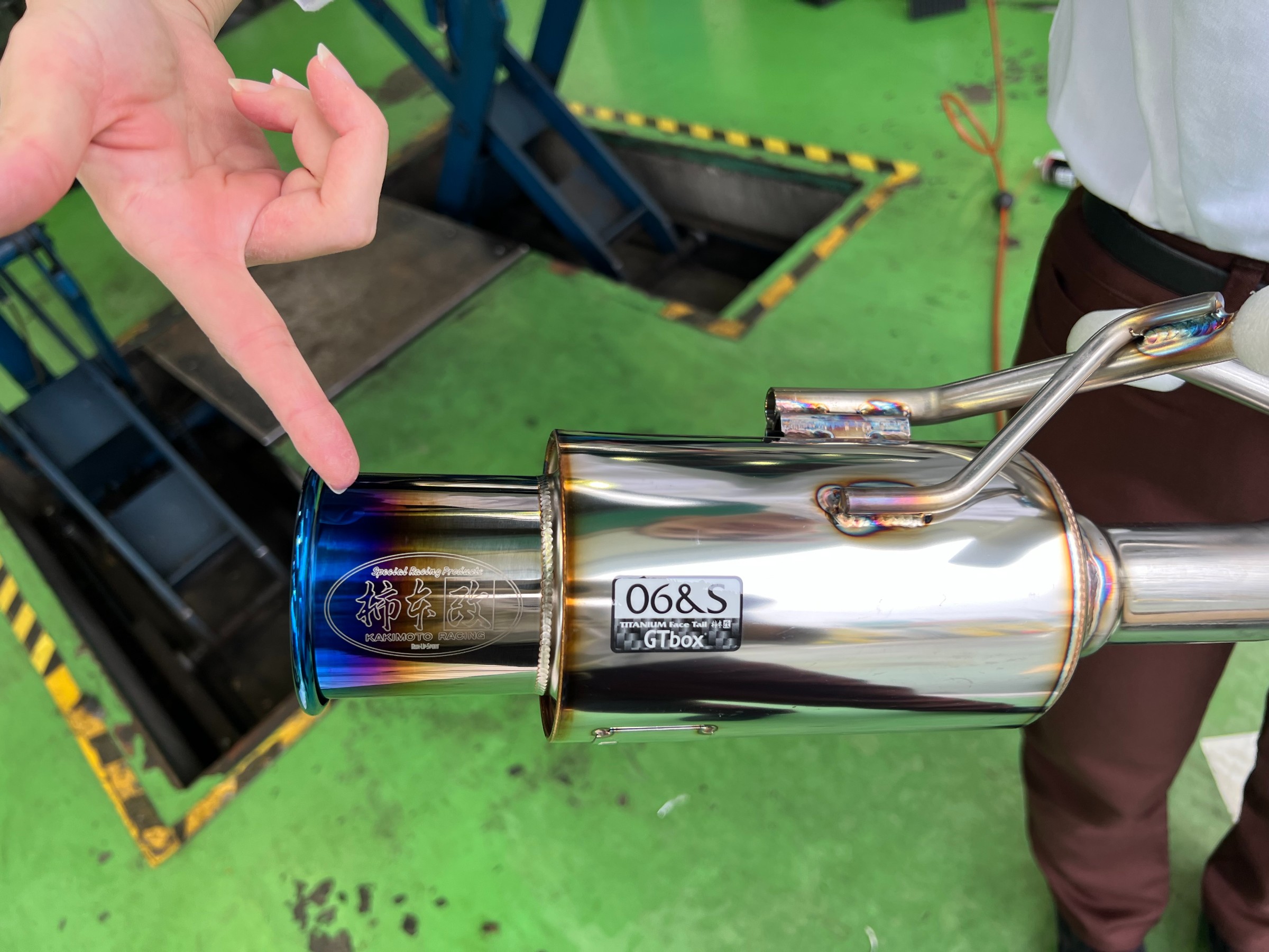 何でも出来る当店松岡スタッフが軽々と持つマフラーはあの「柿本改」!!!