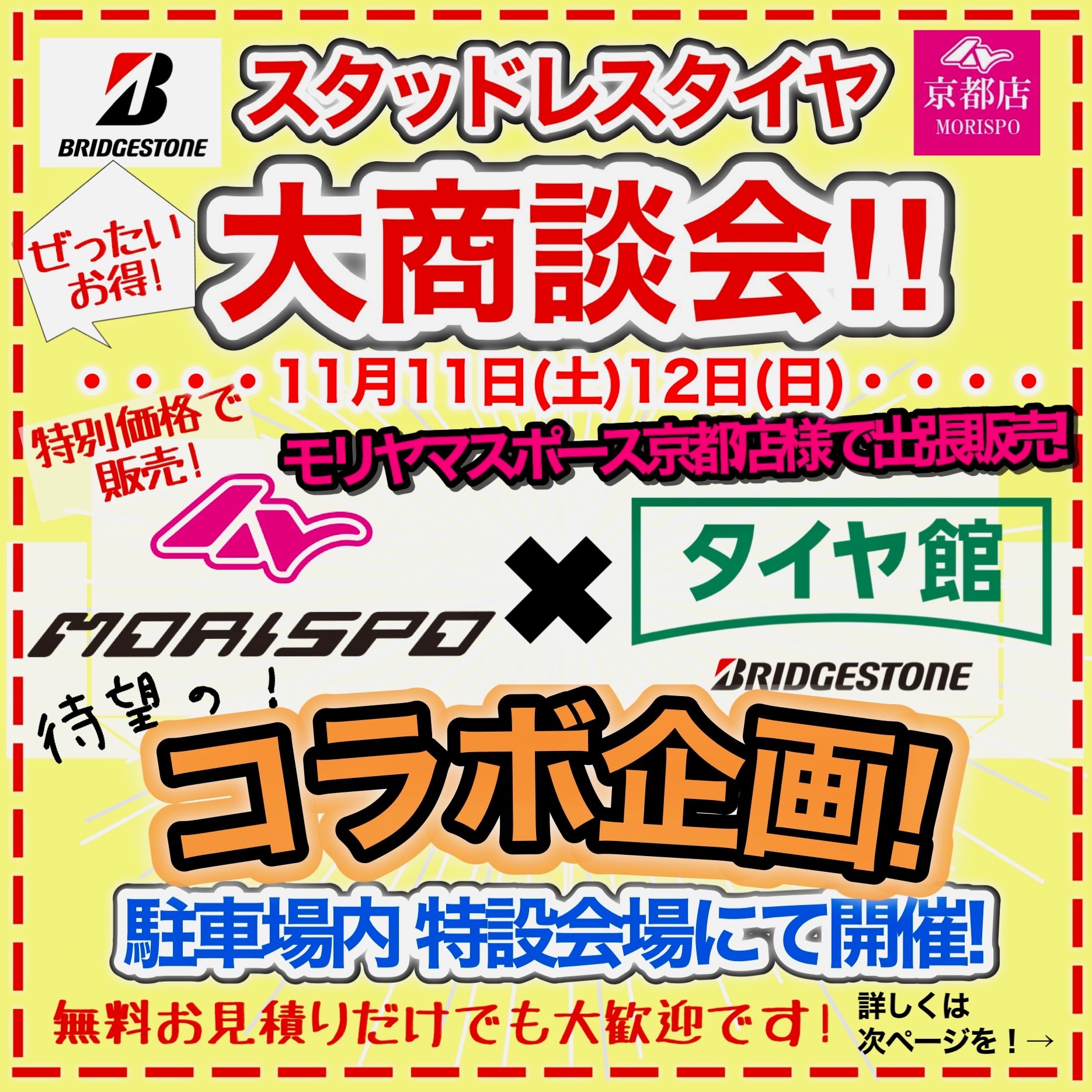 【コラボイベント‼︎】モリスポ京都店様で『スタッドレスタイヤ大商談会』開催‼︎