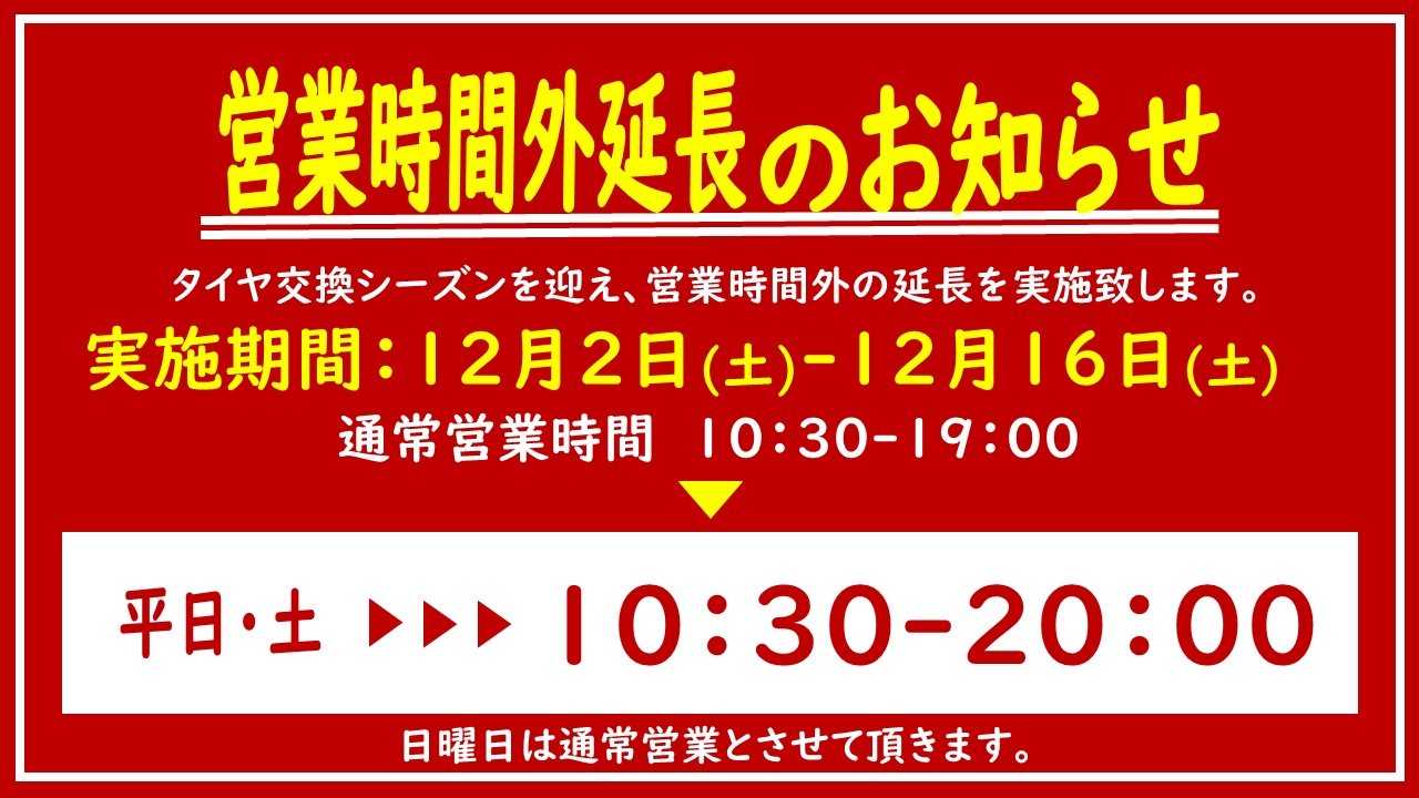 営業時間を延長致します!!