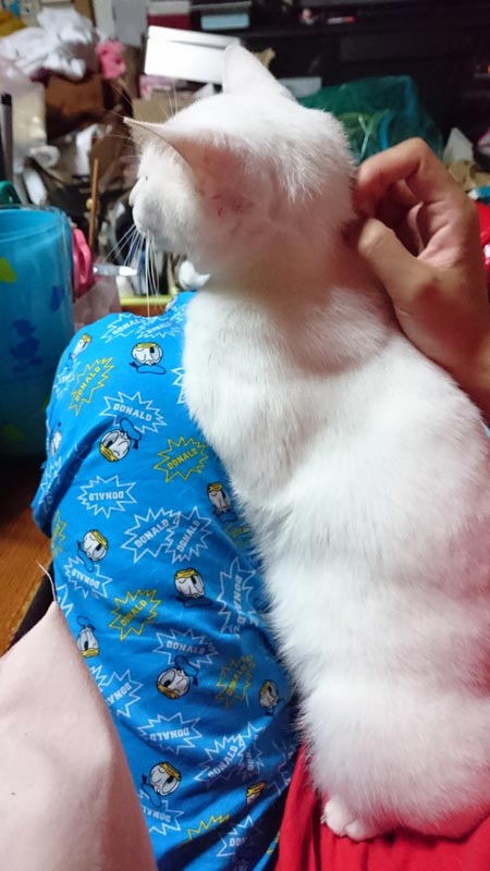 昨日猫チャンズに泡まみれの手を顔に近づけたら、一匹はクンクン…
