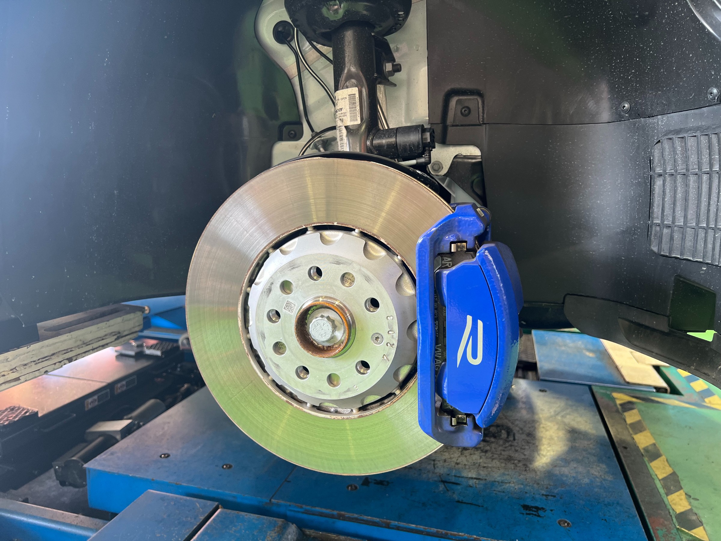 ブレーキにもきちんとロゴが入ってます!青いキャリパーもカッコいい!