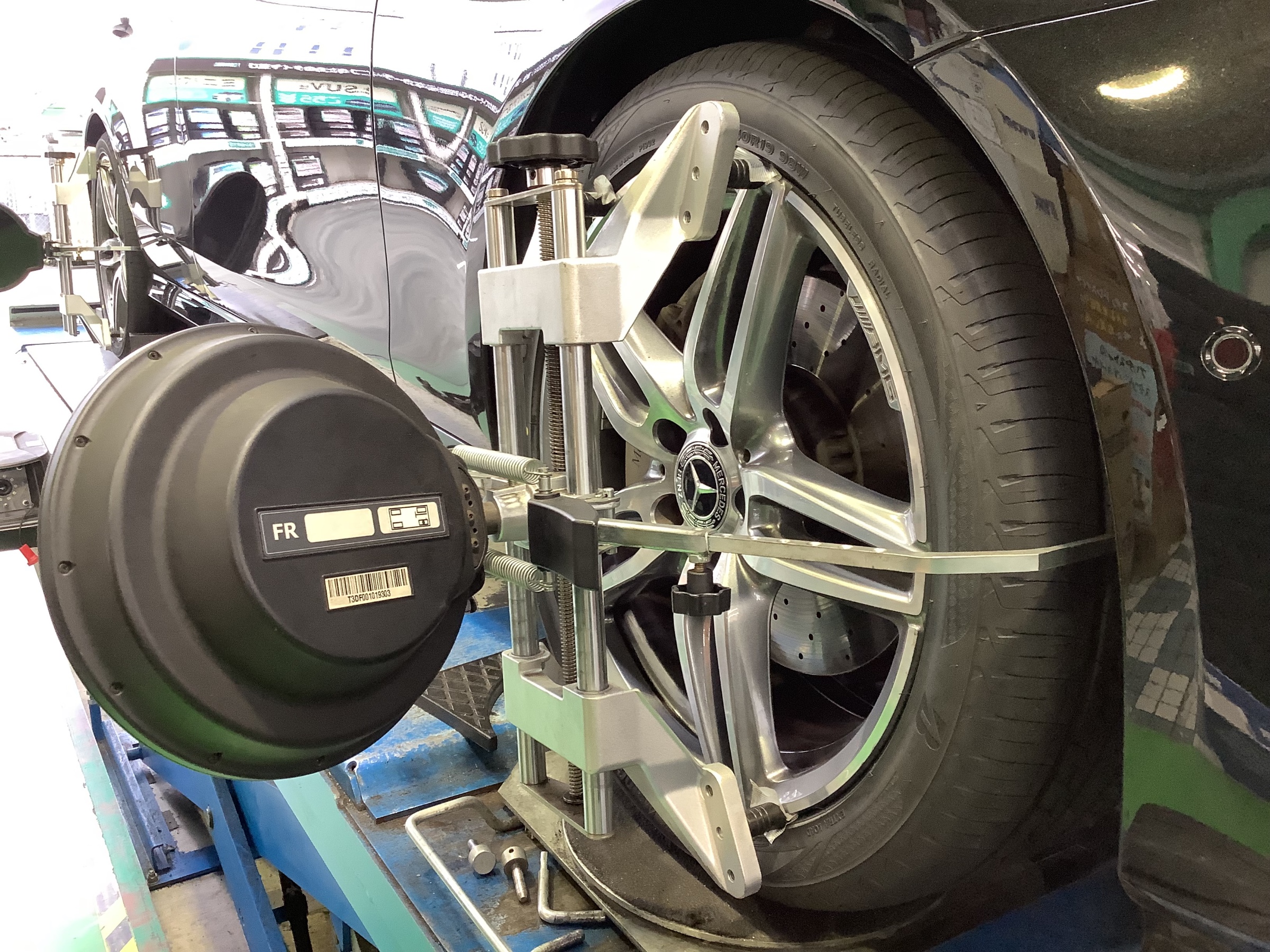 タイヤの設置面や、タイヤの角度等を測定させて頂いております!