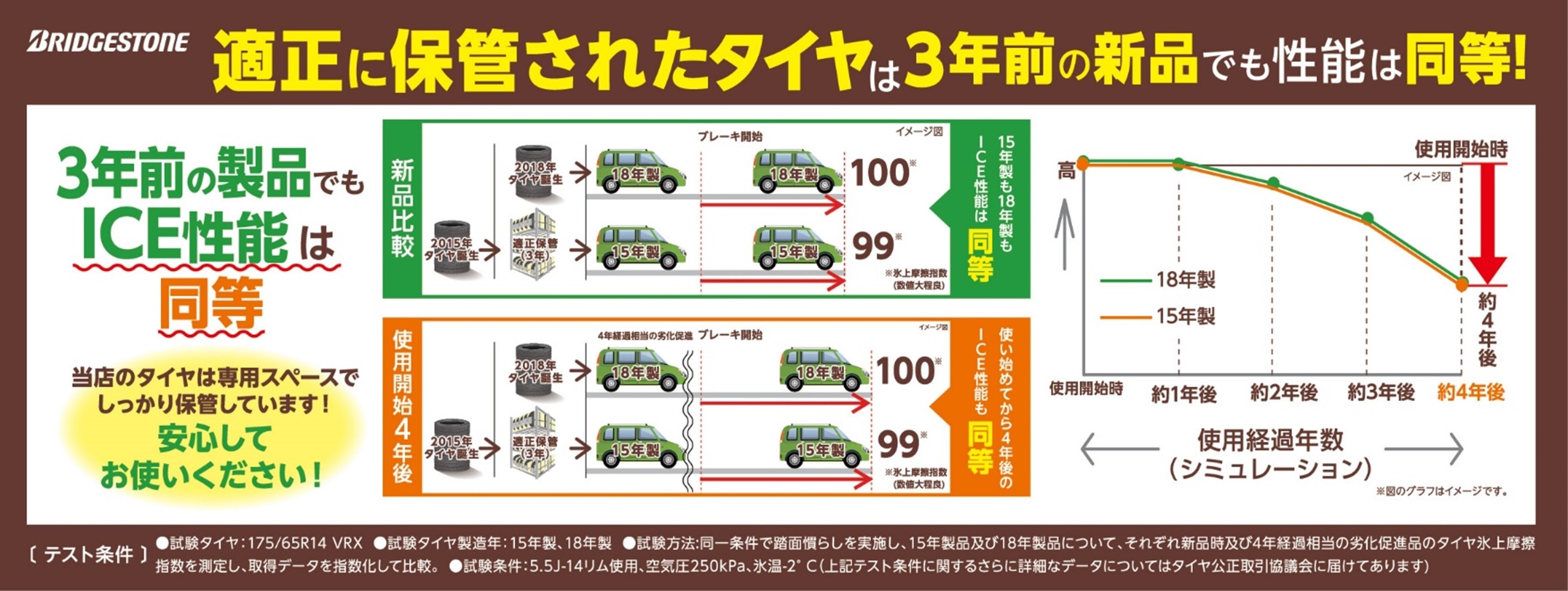 下記表をご覧の通り、適正に保管されたタイヤは、