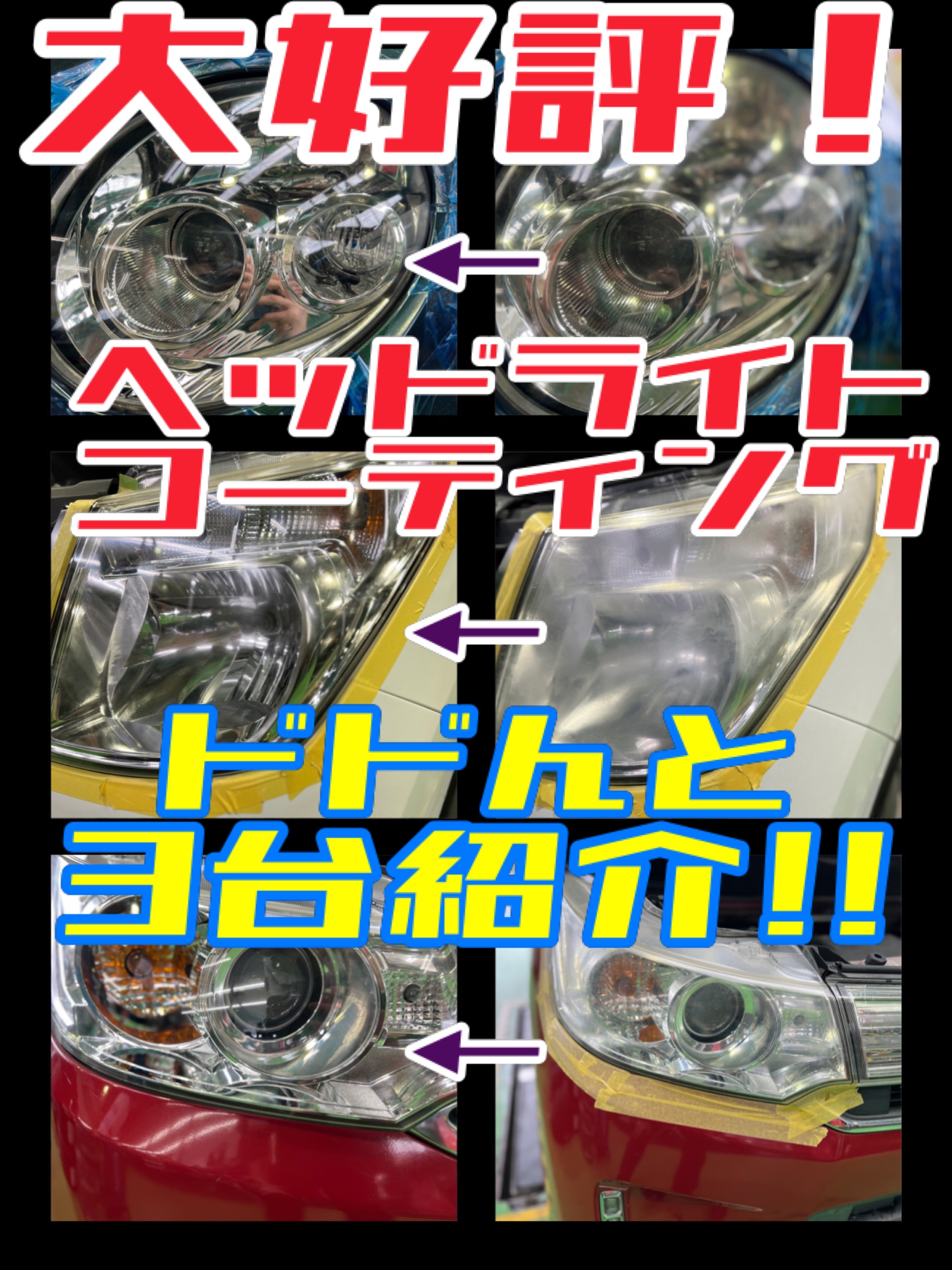 大好評のヘッドライトコーティングをドドン!と3台ご紹介(^O^)/