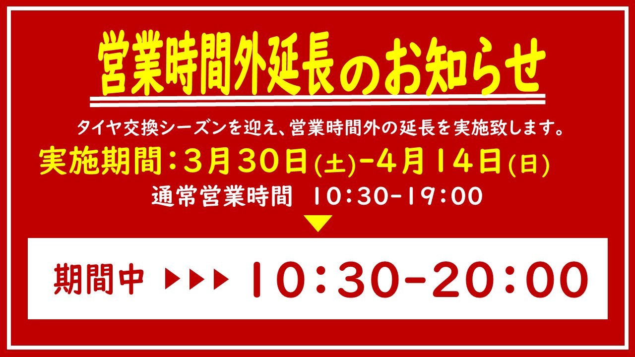 【重要!】3/30(土) - 4/14(日)の間、営業時間を延長致します!