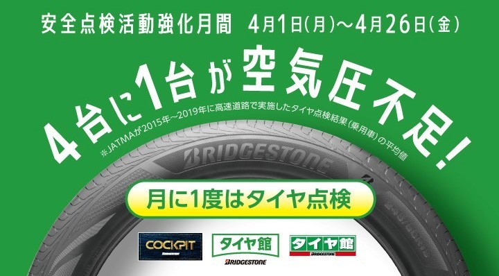 車の4台に1台がタイヤ空気圧不足と言われています。
