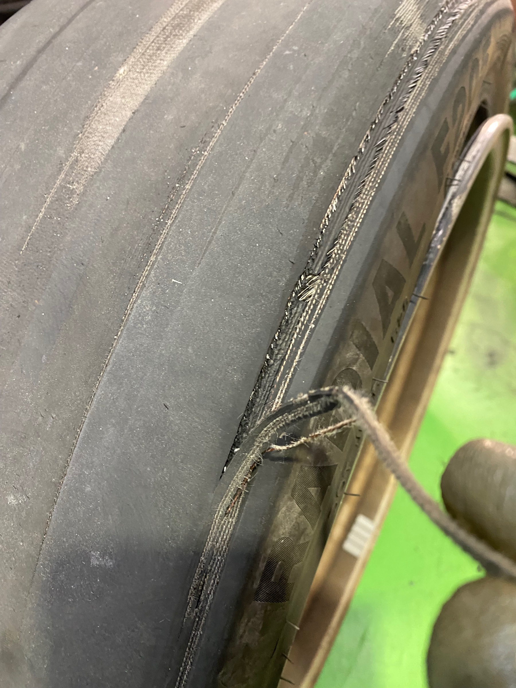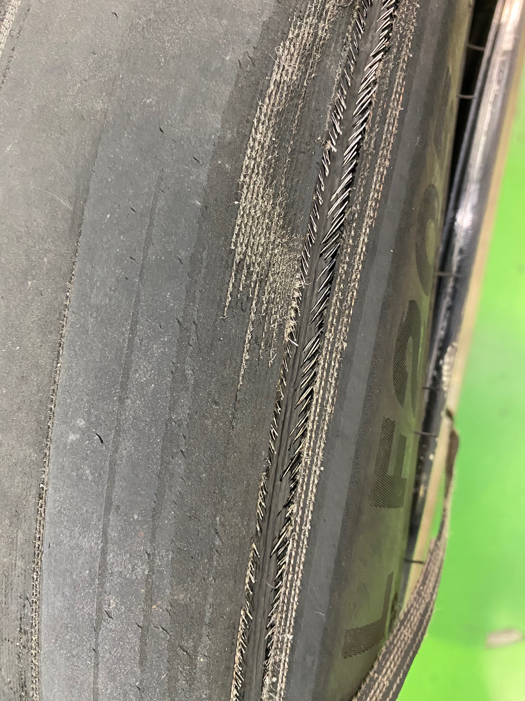 ワイヤーも見え、タイヤの皮が剝がれています( ;∀;)