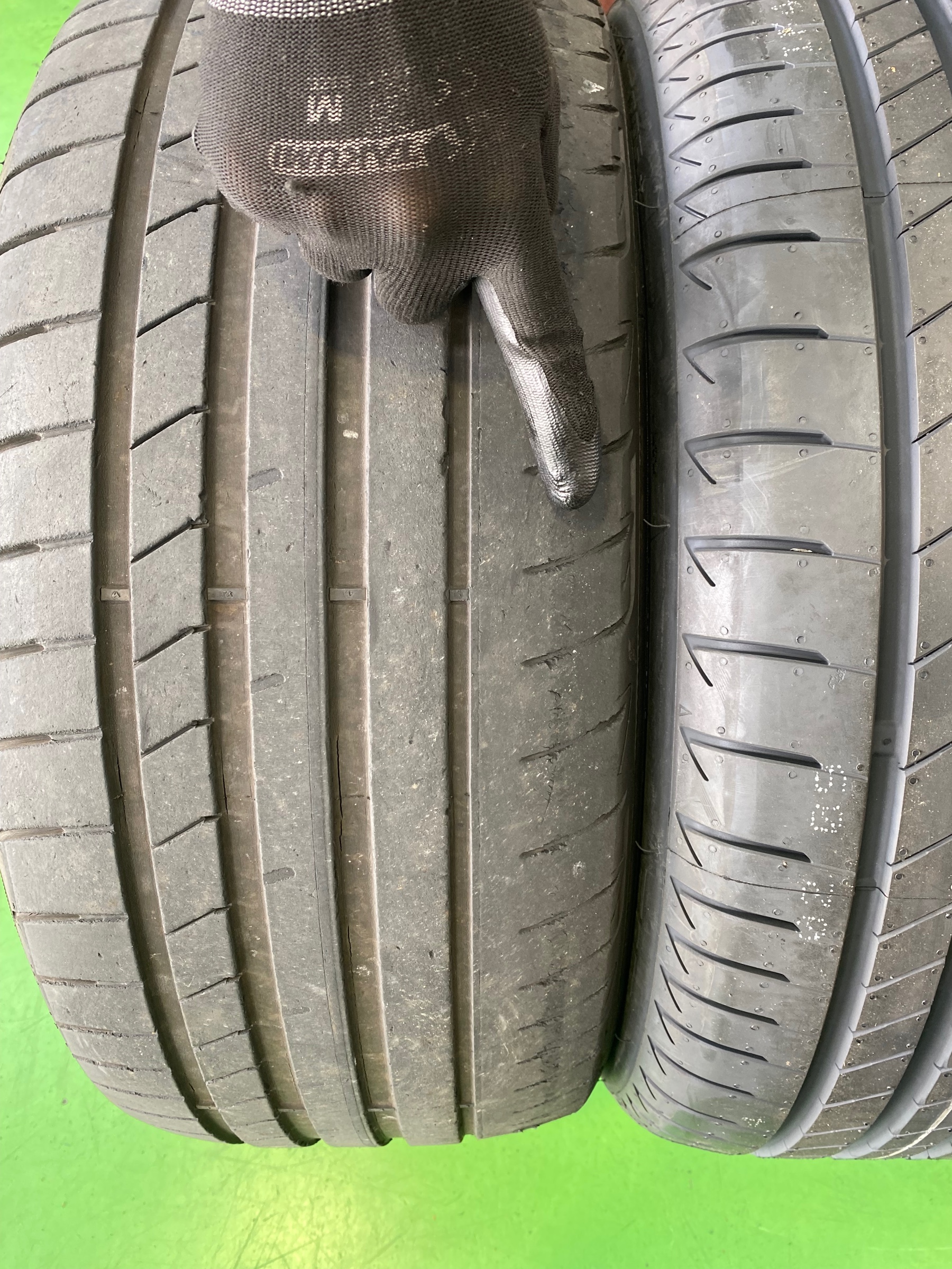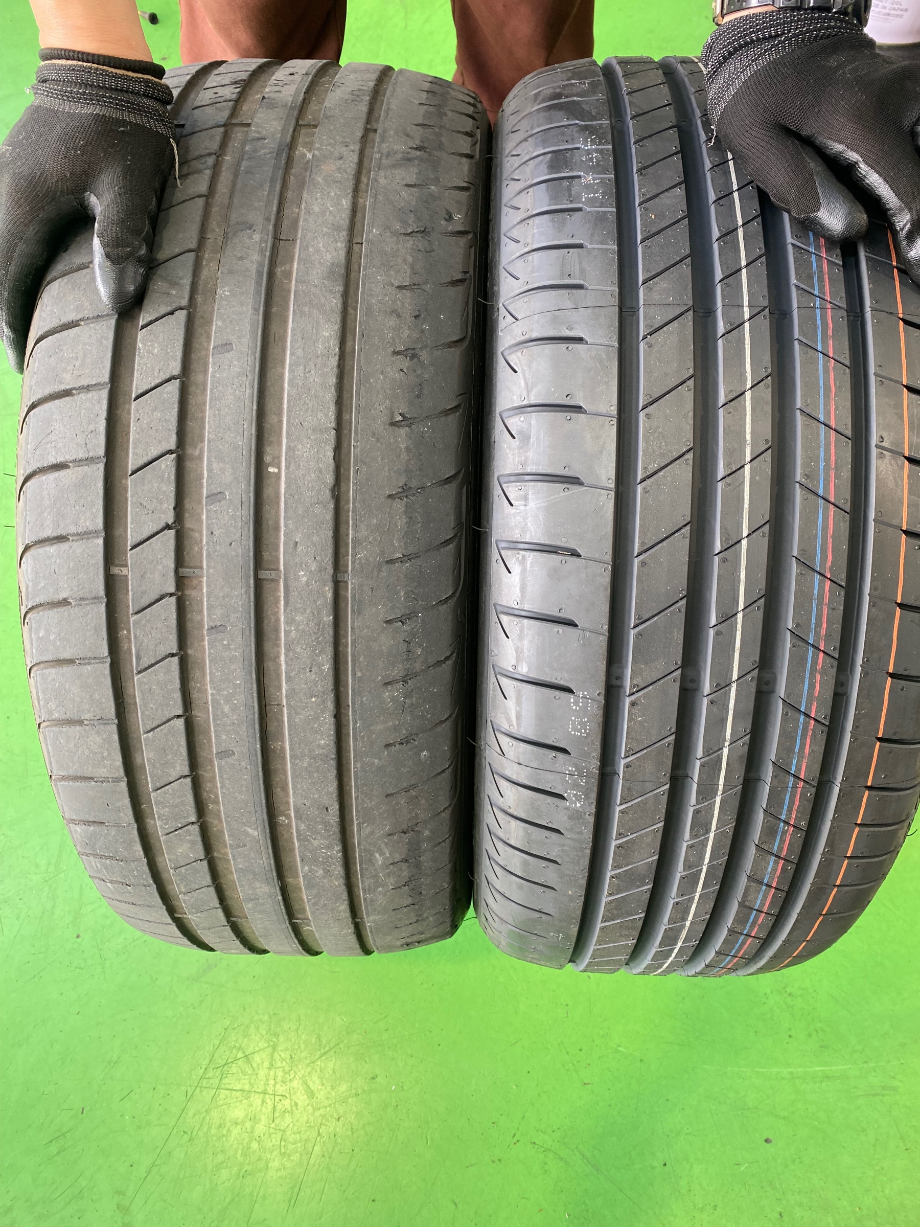 見させていただいたところ、新品のタイヤと比較しても