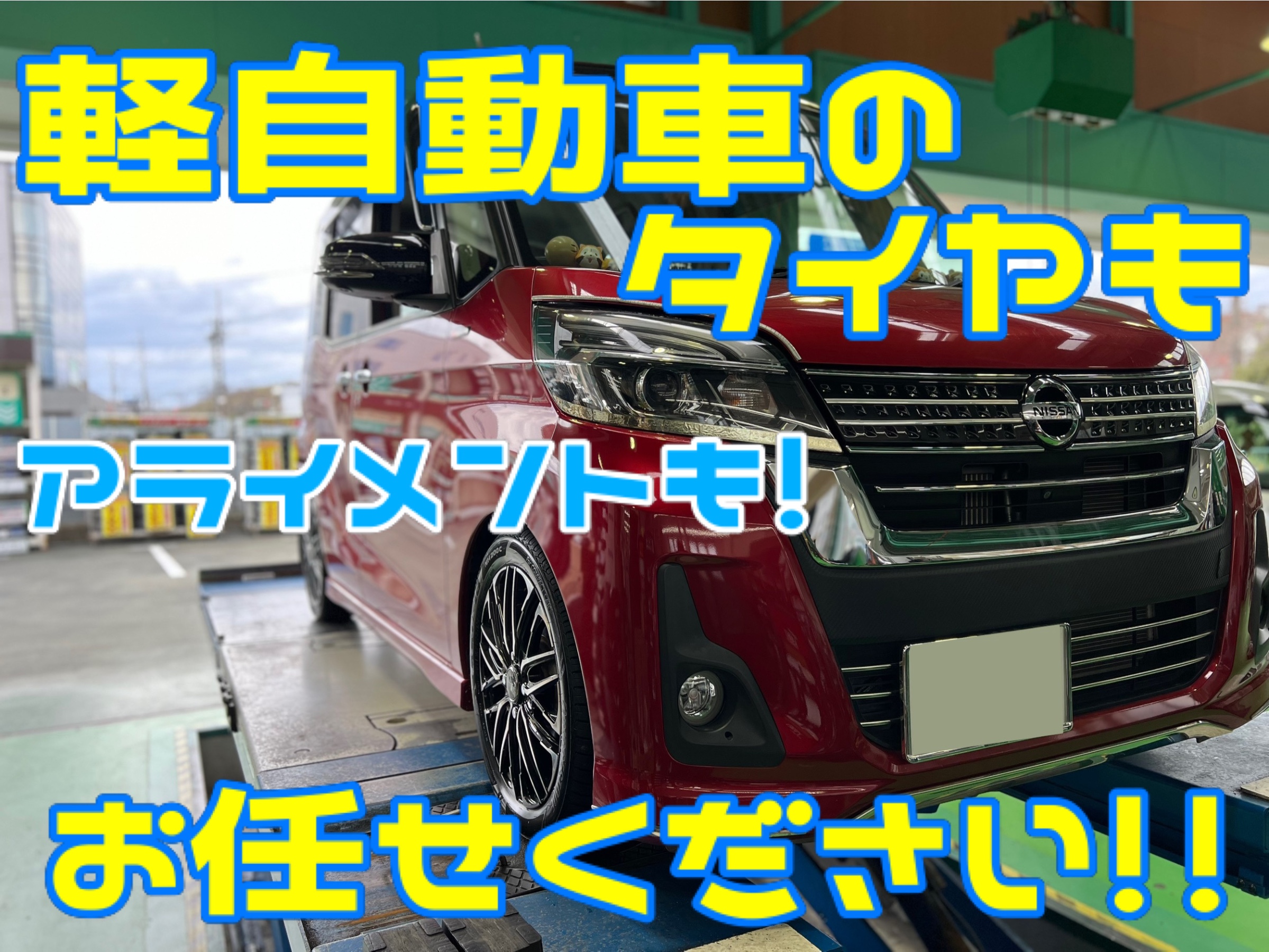 軽自動車のタイヤもお任せください‼同時施工のアライメントもおススメ(^o^)/!