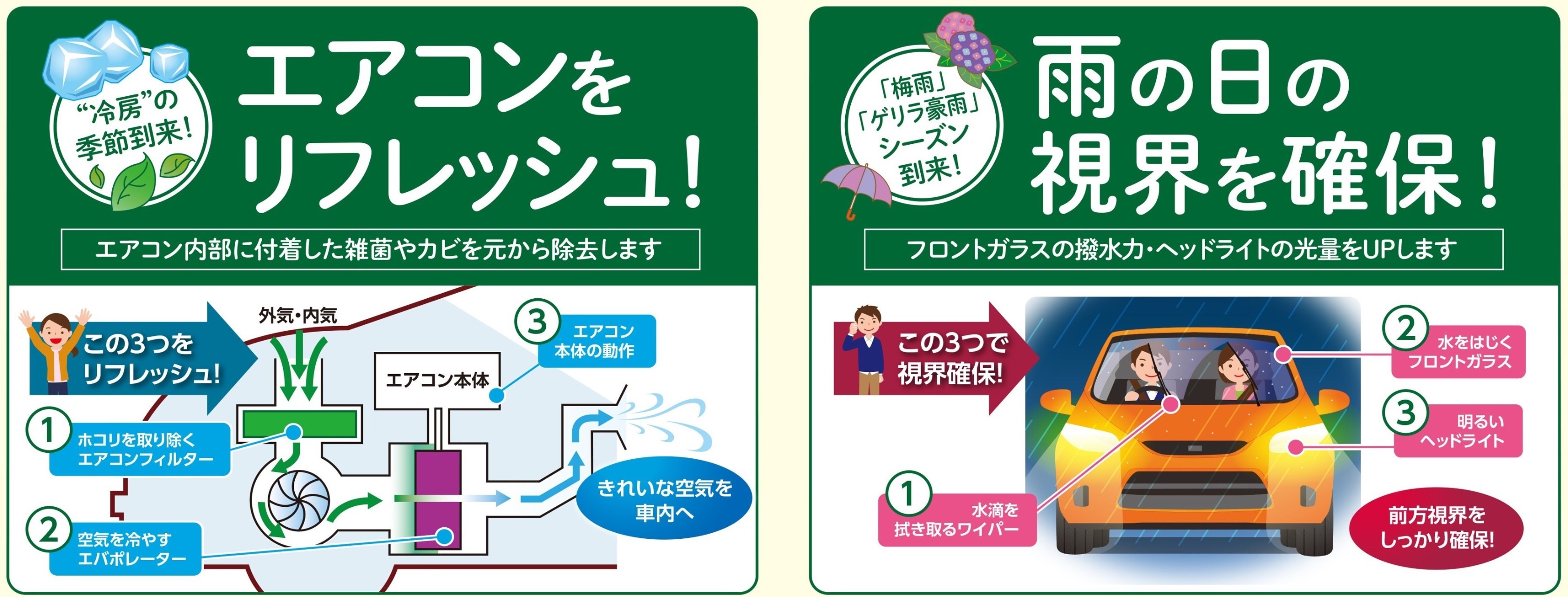 カビの発生が活発になったり、雨の日の運転は