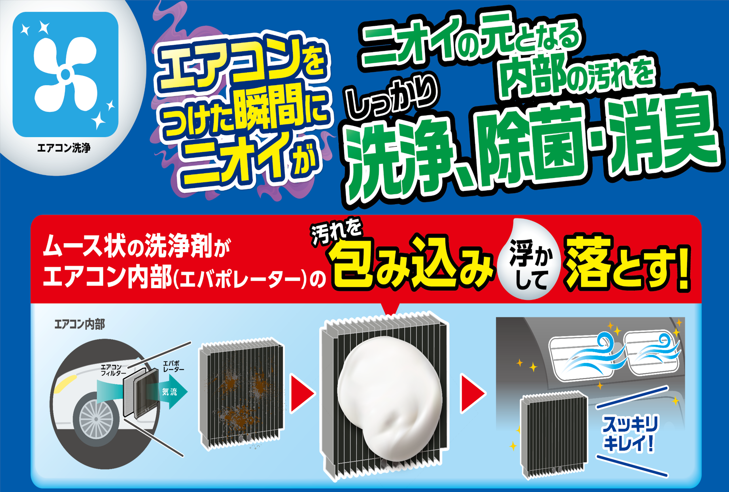 嫌なニオイの主な原因は、エバポレーター上に