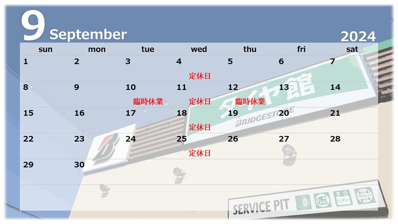 ◎ 9月定休日のお知らせ ◎