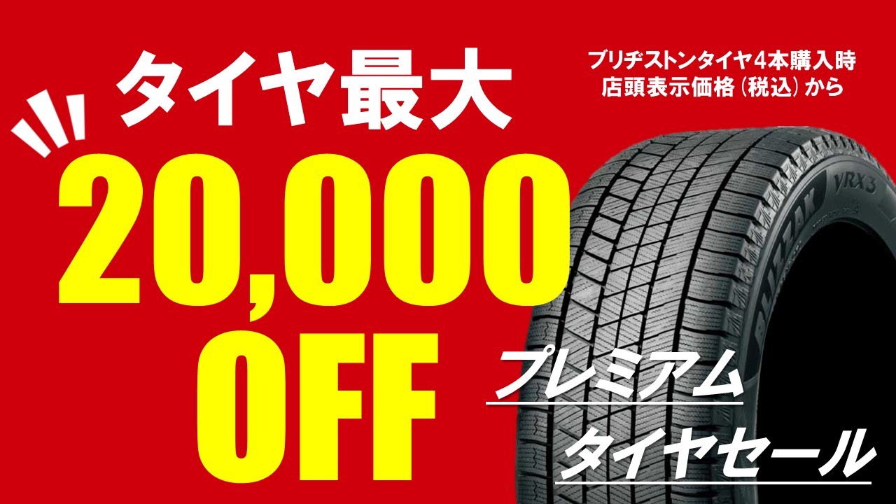 ブリヂストンのタイヤ4本ご購入で、タイヤ最大20,000円OFF!