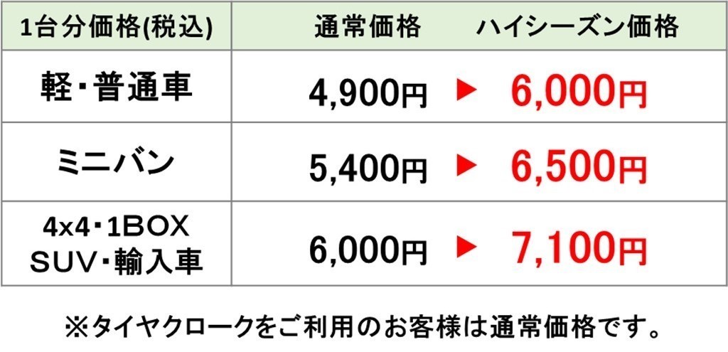 【重要】12月ハイシーズン価格のお知らせ