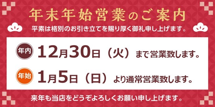 年末年始営業のお知らせ