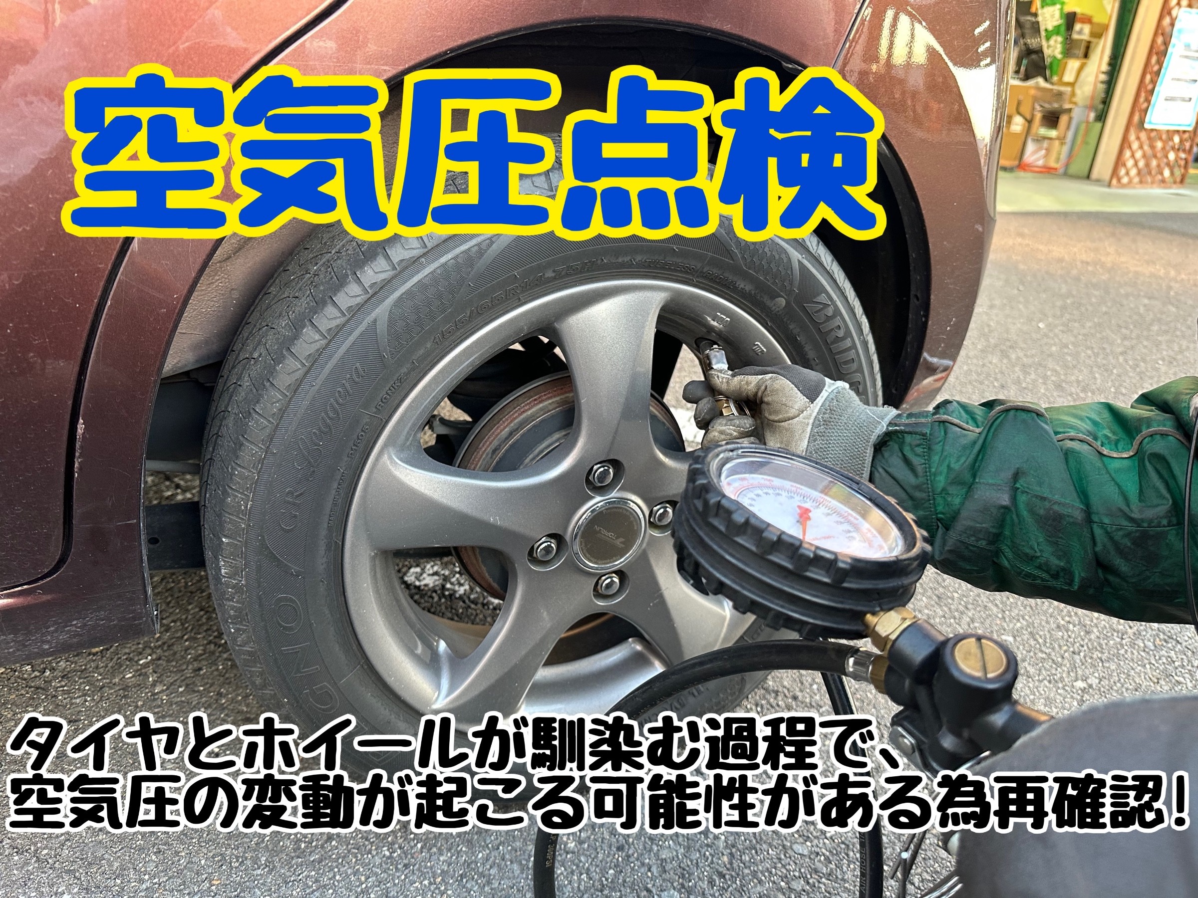 新品タイヤがホイールになじむ過程で、空気圧が低下する場合がございます。