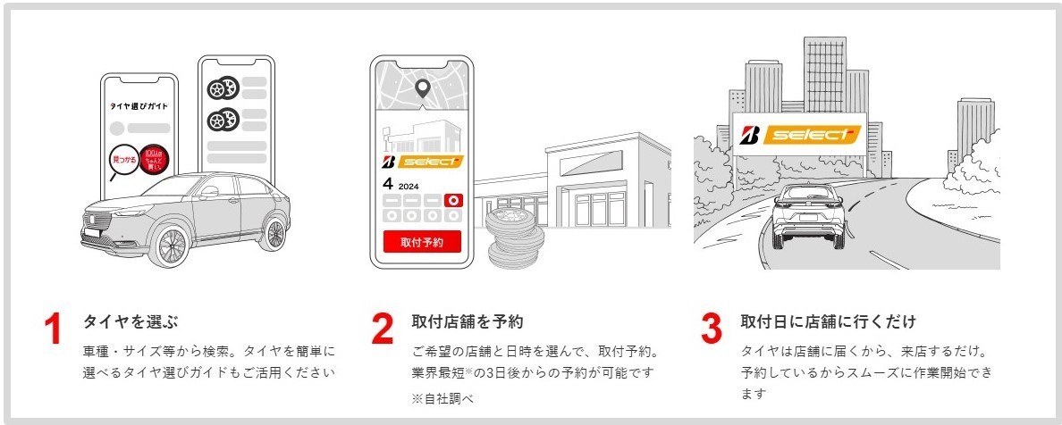 ご購入の最短3日後からタイヤの取付予約が可能です。