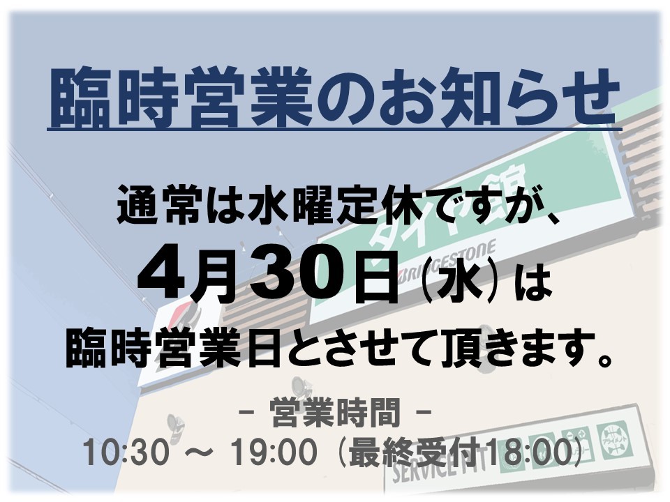 明日30日(水)は臨時営業となります!