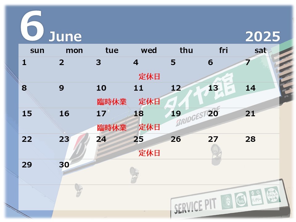 ◎ 6月定休日のお知らせ ◎