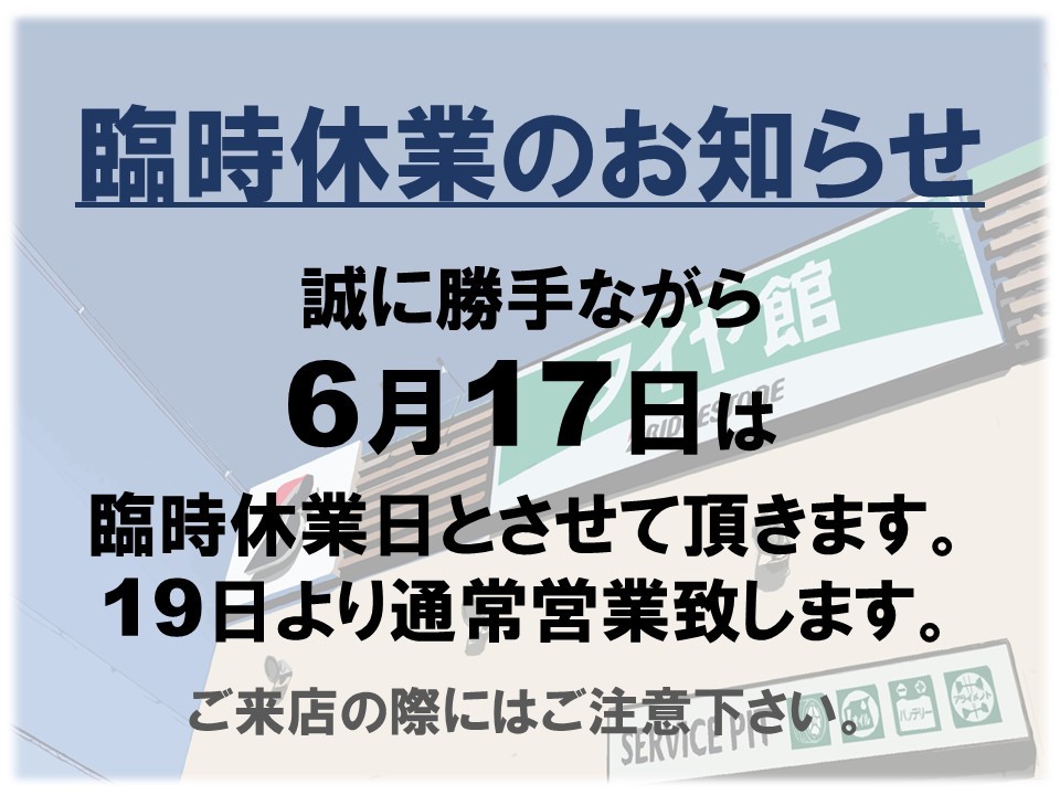6/17(火)は臨時休業日となっております。