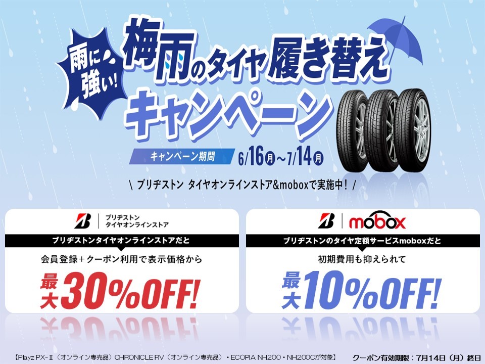 【オンラインストア × mobox】梅雨のタイヤ履き替えキャンペーン本日より開催!