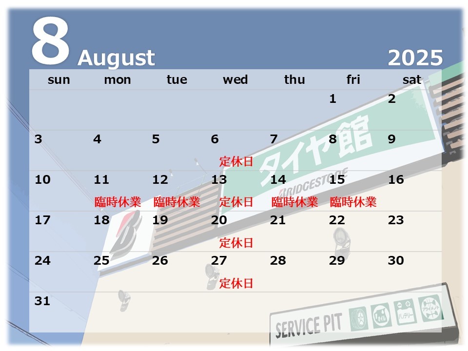 ◎ 8月定休日のお知らせ ◎