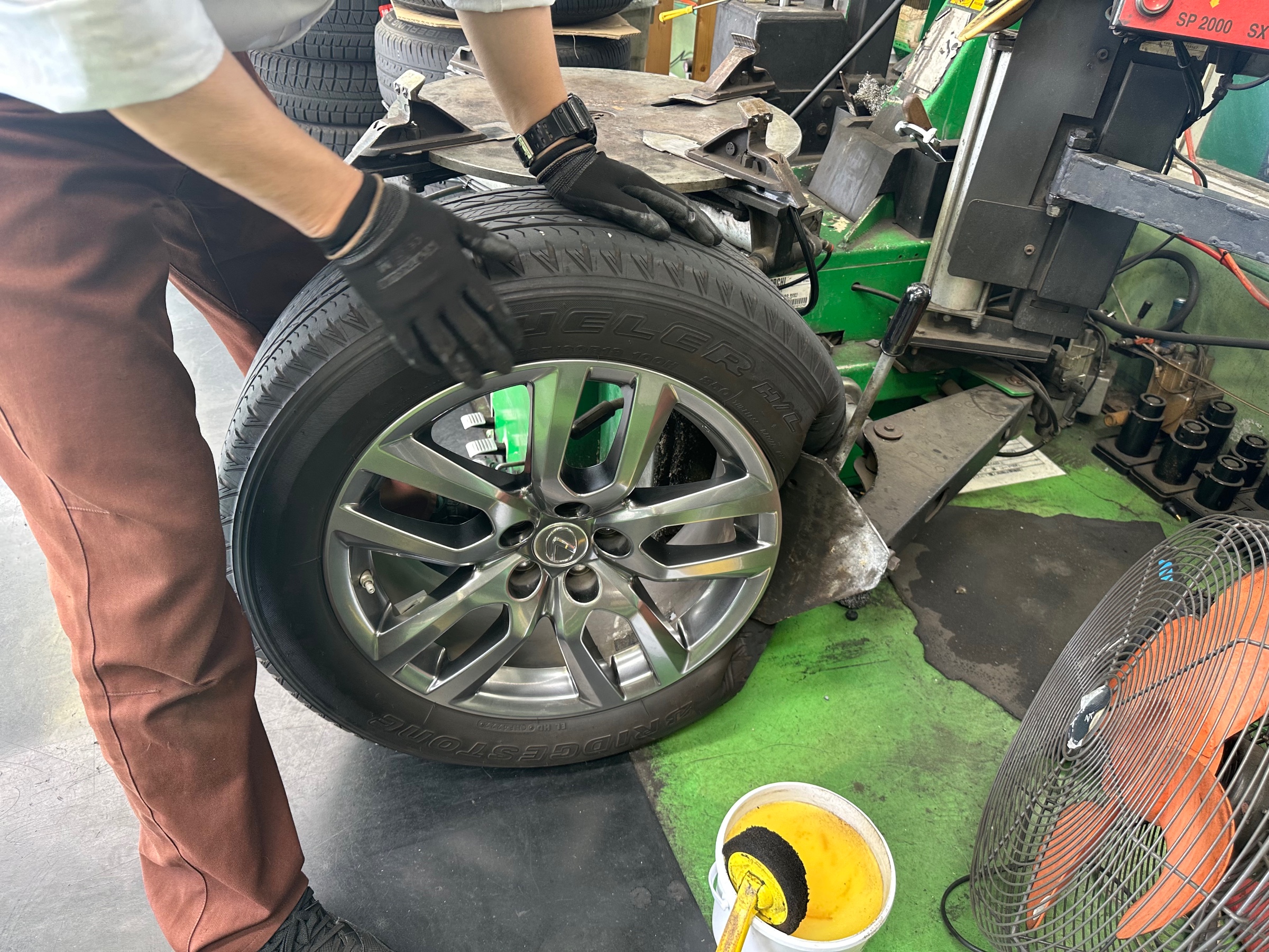 古いタイヤをばらして、新品タイヤへ交換していきます!