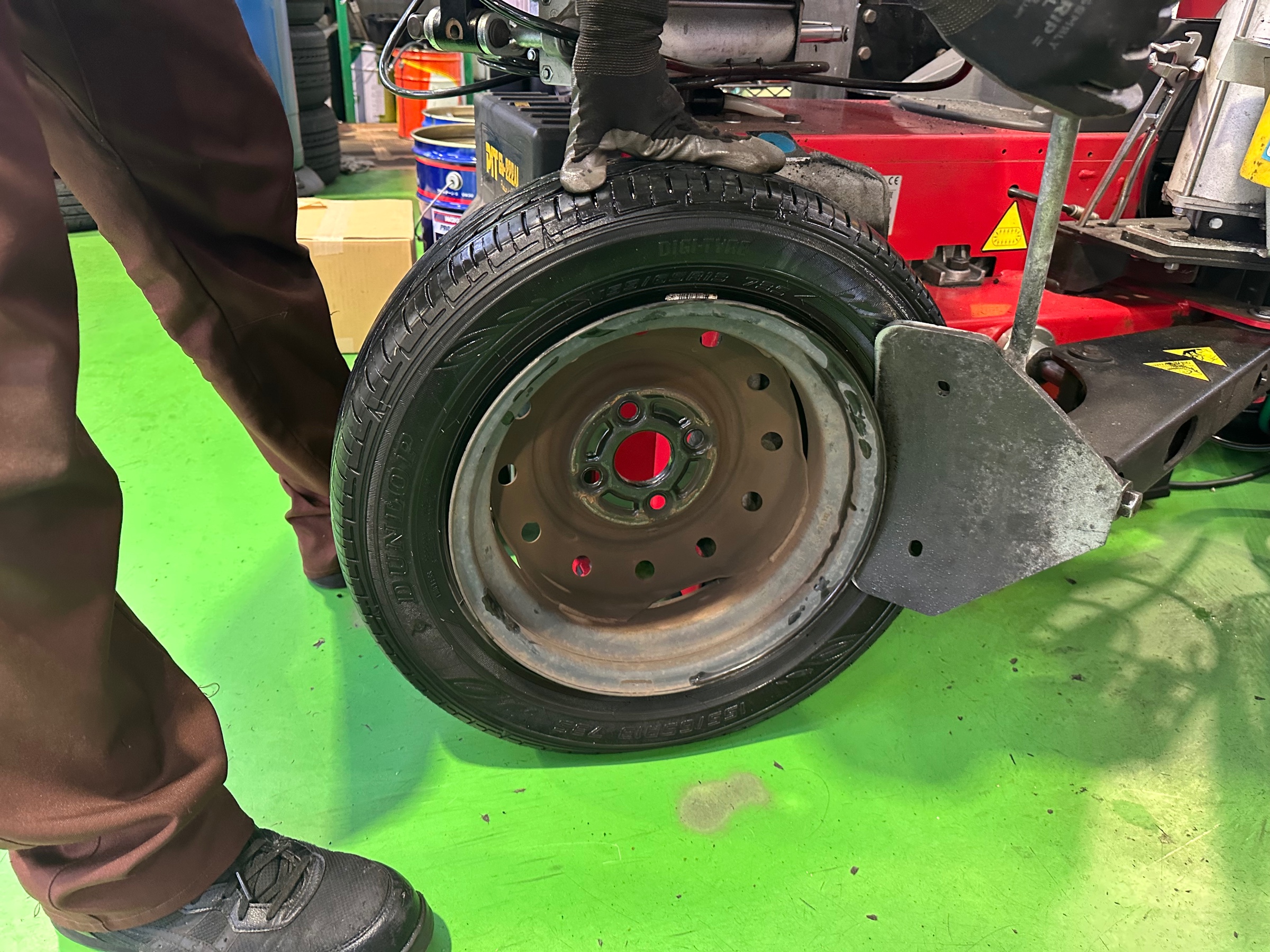 タイヤの組み替えが完了したらタイヤを取り付け、