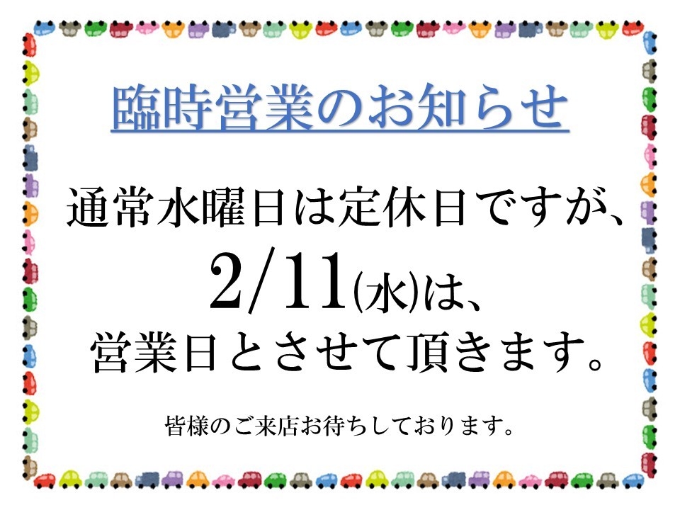 2/11(水)は通常定休日ですが営業致します!