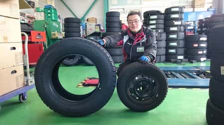 なので近くにあった軽自動車のタイヤも入れてパシャリ!