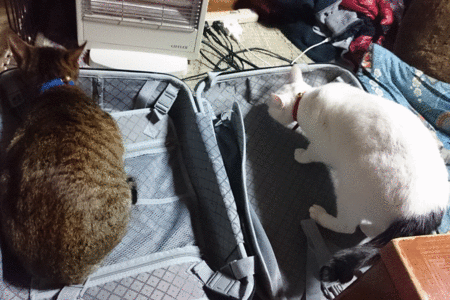 毎度の事ながら用意をしようとキャリーを明けるとすかさず邪魔をする猫チャンズ…