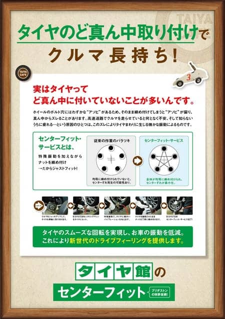 この「センターフィット」取り付け!ブリヂストンが特許をとっている作業なのでタイヤ館
