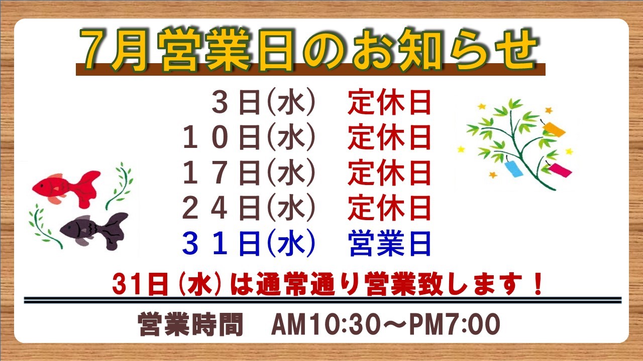 7月営業日のお知らせ!
