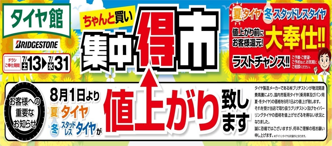BSを含め各社タイヤ価格が値上がりする事はご存知の通りです。