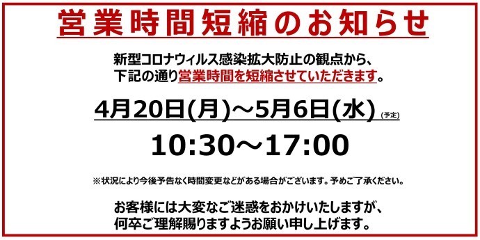 閉店時刻が17時までとなります。