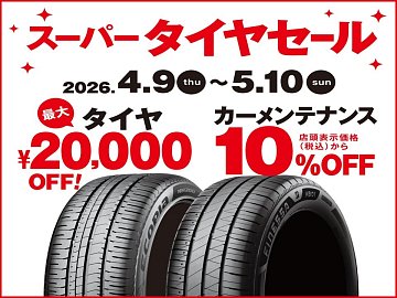 タイヤ最大20,000円引き‼スーパータイヤセール開催中!