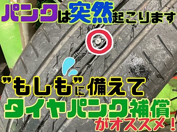 パンクは意外と身近なトラブル!タイヤ館のタイヤパンク補償がおススメです☆当店ならではのメリットも♪