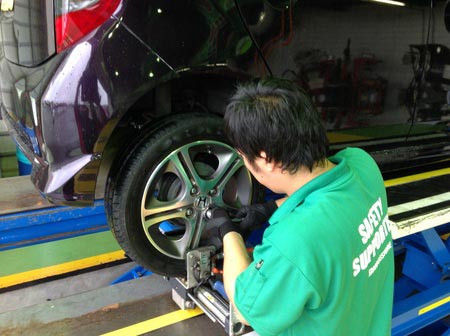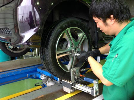 センターフィットとは文字の通り、タイヤホイールをお車に取り付ける際に専用の機械で特殊振動を与えながら取付する事によって車軸の中心に取付出来る技術です。