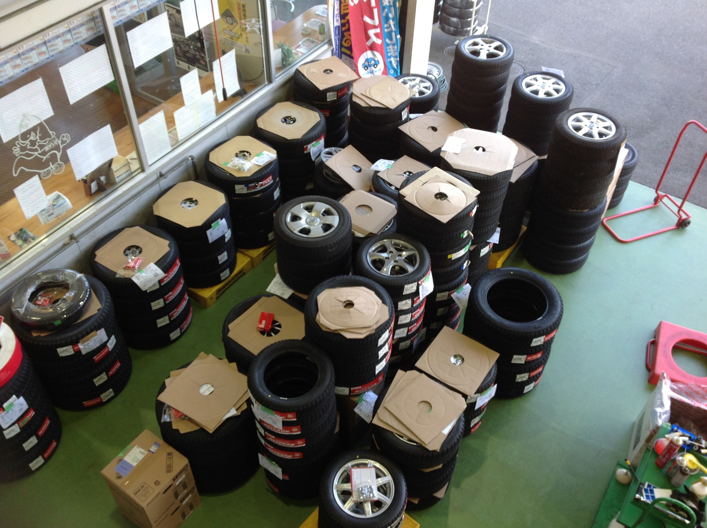 ピット内がタイヤとホイールで埋もれてます。。。汗
