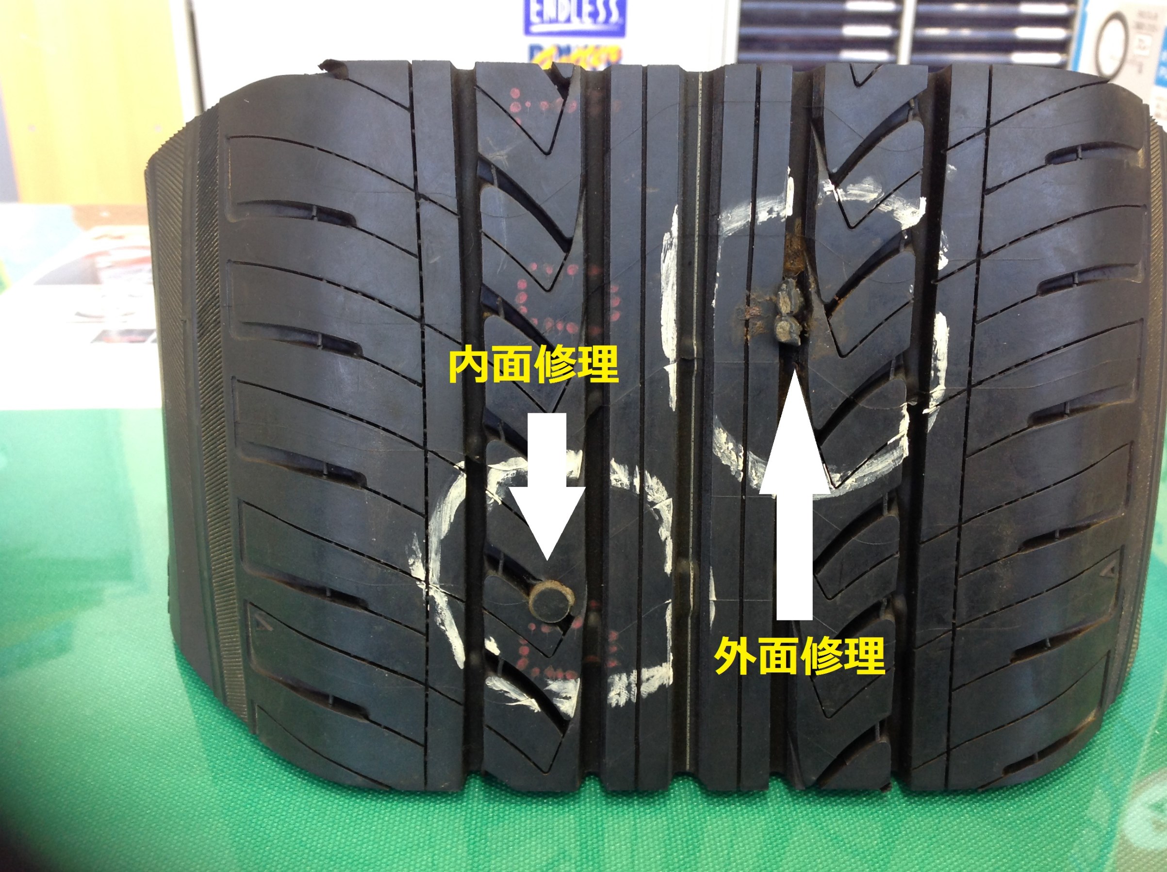 当店では、より安心・安全なカーライフのために内面パンク修理を行っております。