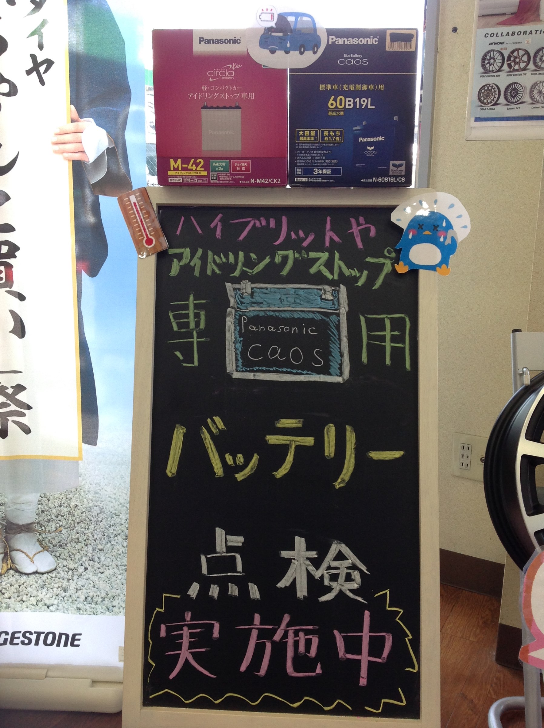 この時期こそ!! ポスト 2018年7月1日 皆さん、こんにちは梅雨が明けあつーい日がつづきますね!! これからエアコンを特に使う時期ですね。お出かけのとき急なバッテリー上がりで困る前に是非タイヤ館へ!! 担当:みやざきくん