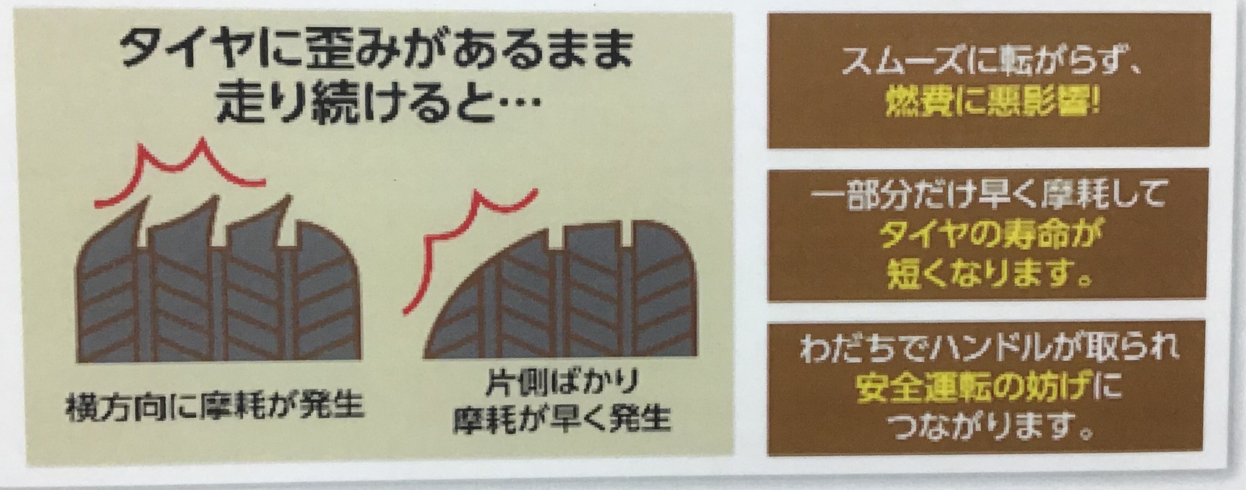 実はタイヤの取付角度がバラバラだと怖い思いをするのをご存知ですか?!