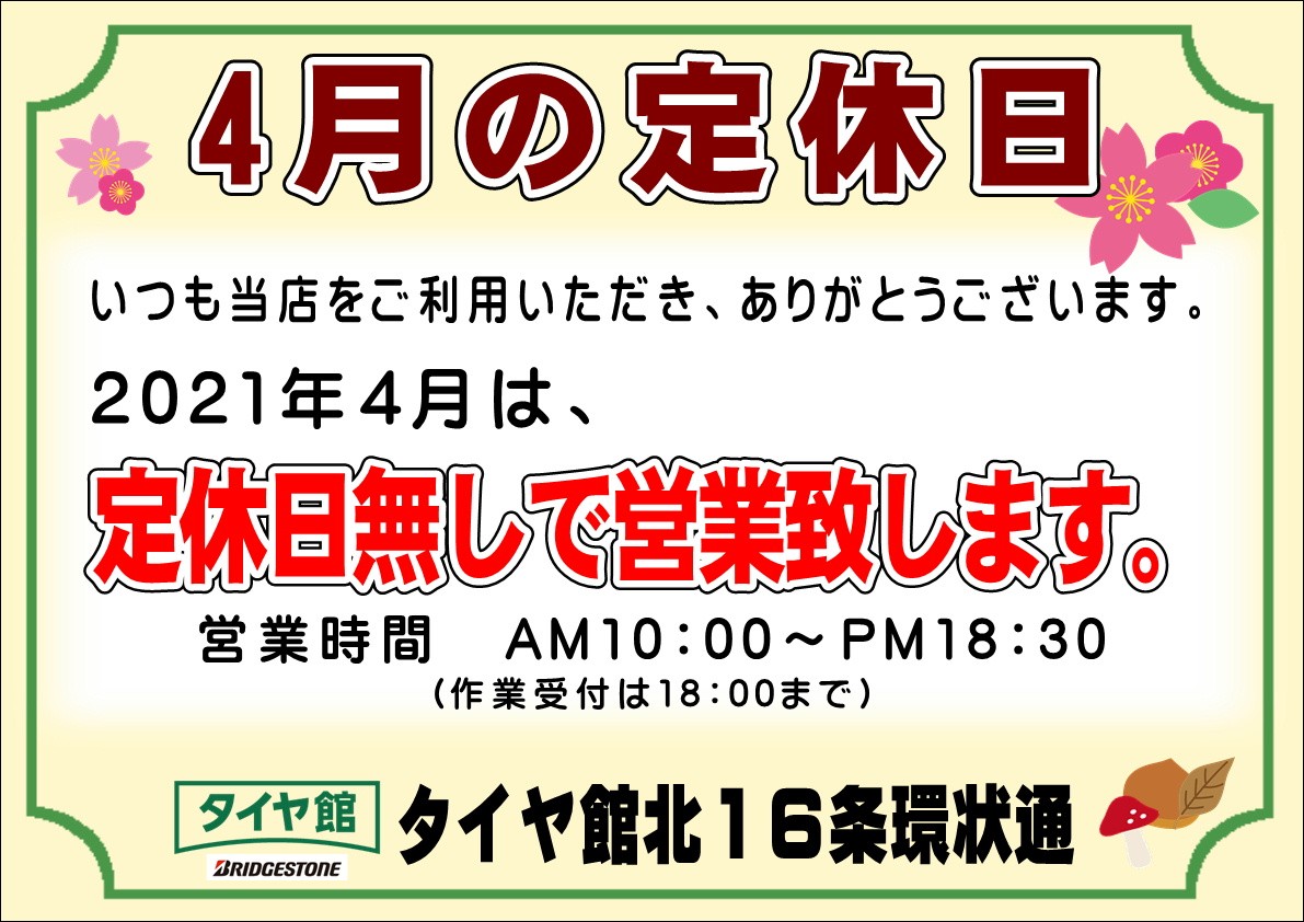 こんにちは♪札幌市東区のブリヂストンタイヤ専門店「タイヤ館北16条環状通」店です^^