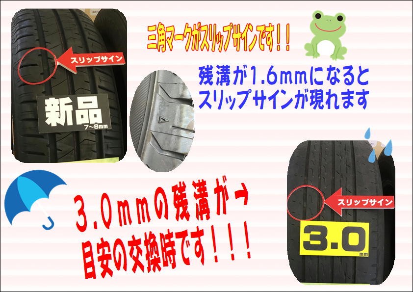 当店でのタイヤ交換の目安は残溝3~4mmでの予防交換をオススメしております!!