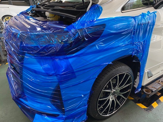 取付の際はボディを保護養生し開始です。