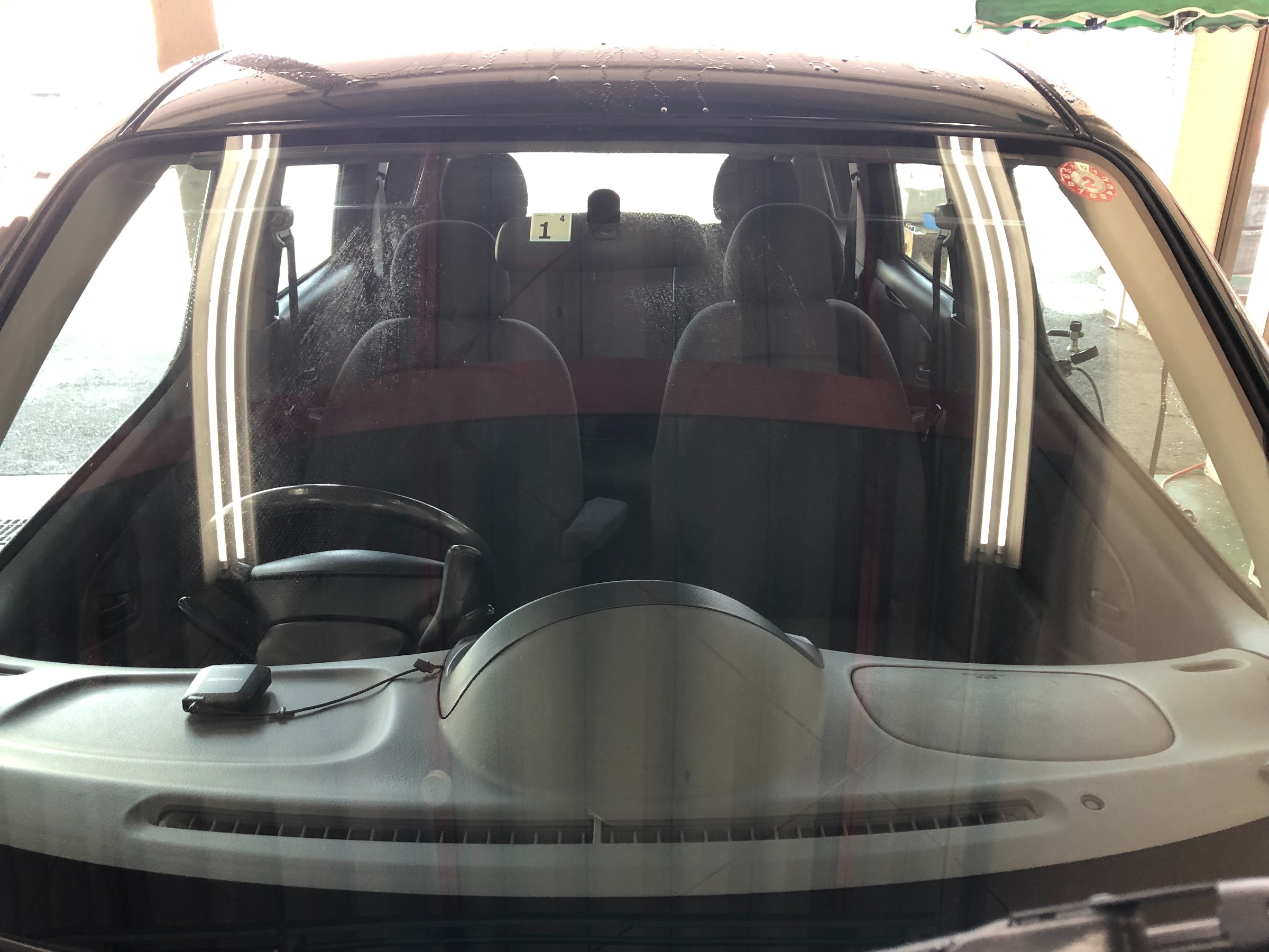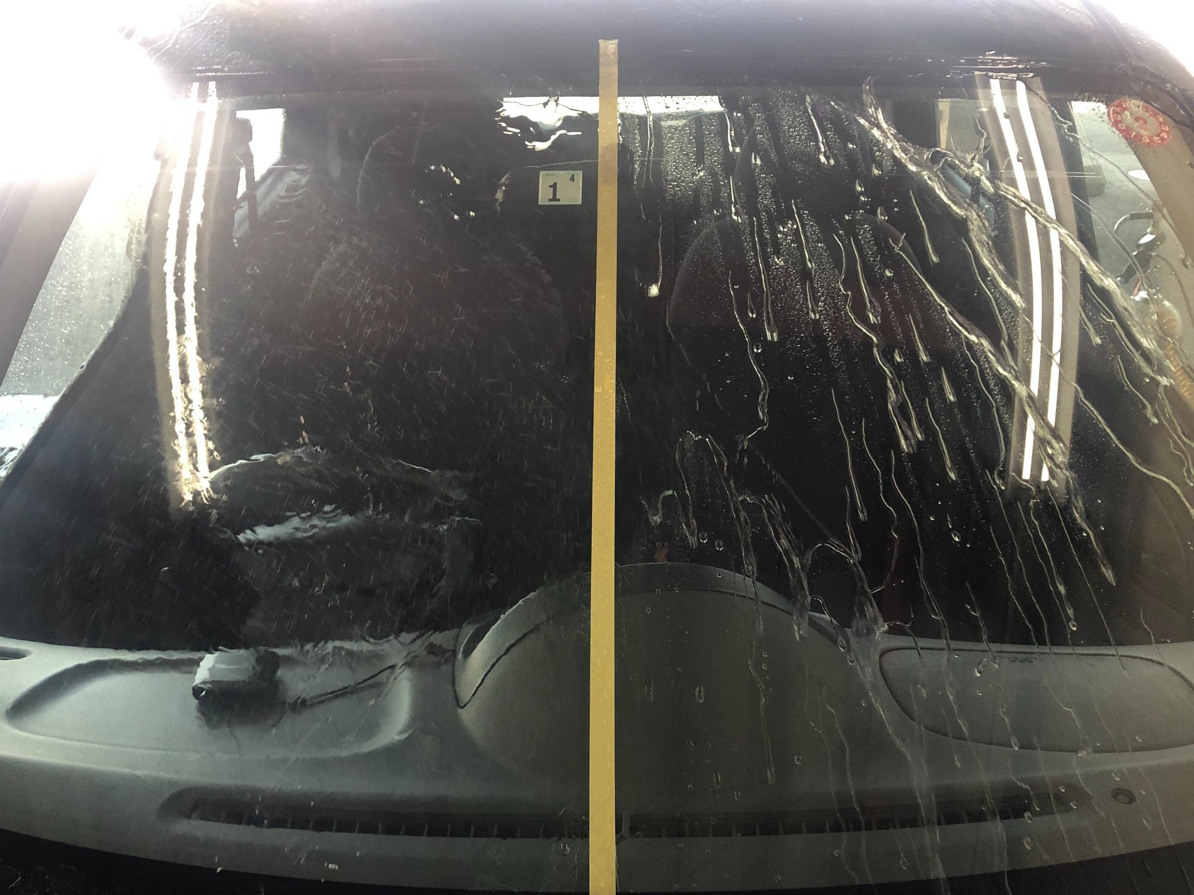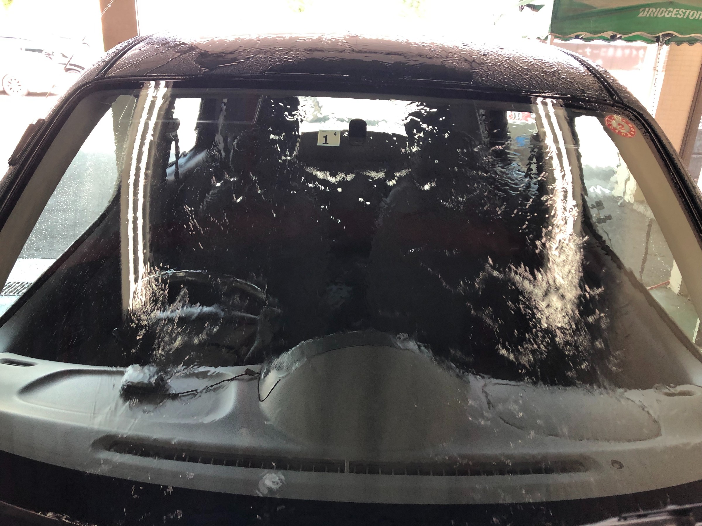 ①まずはフロントガラスの汚れ等を水で綺麗にします!
