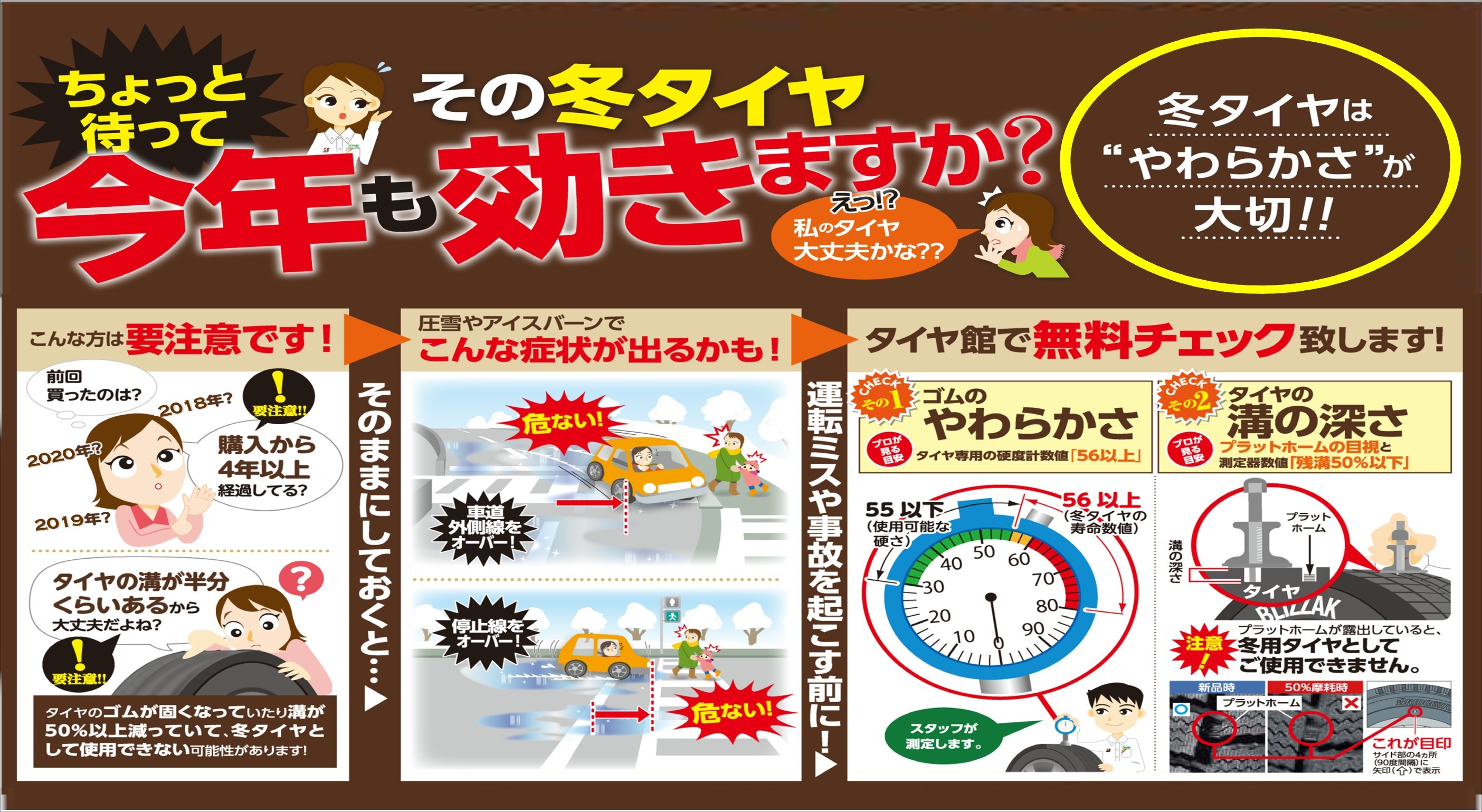 【今ご使用しているスタッドレスタイヤは今シーズンも効きますか?】タイヤ無料点検実施中♪