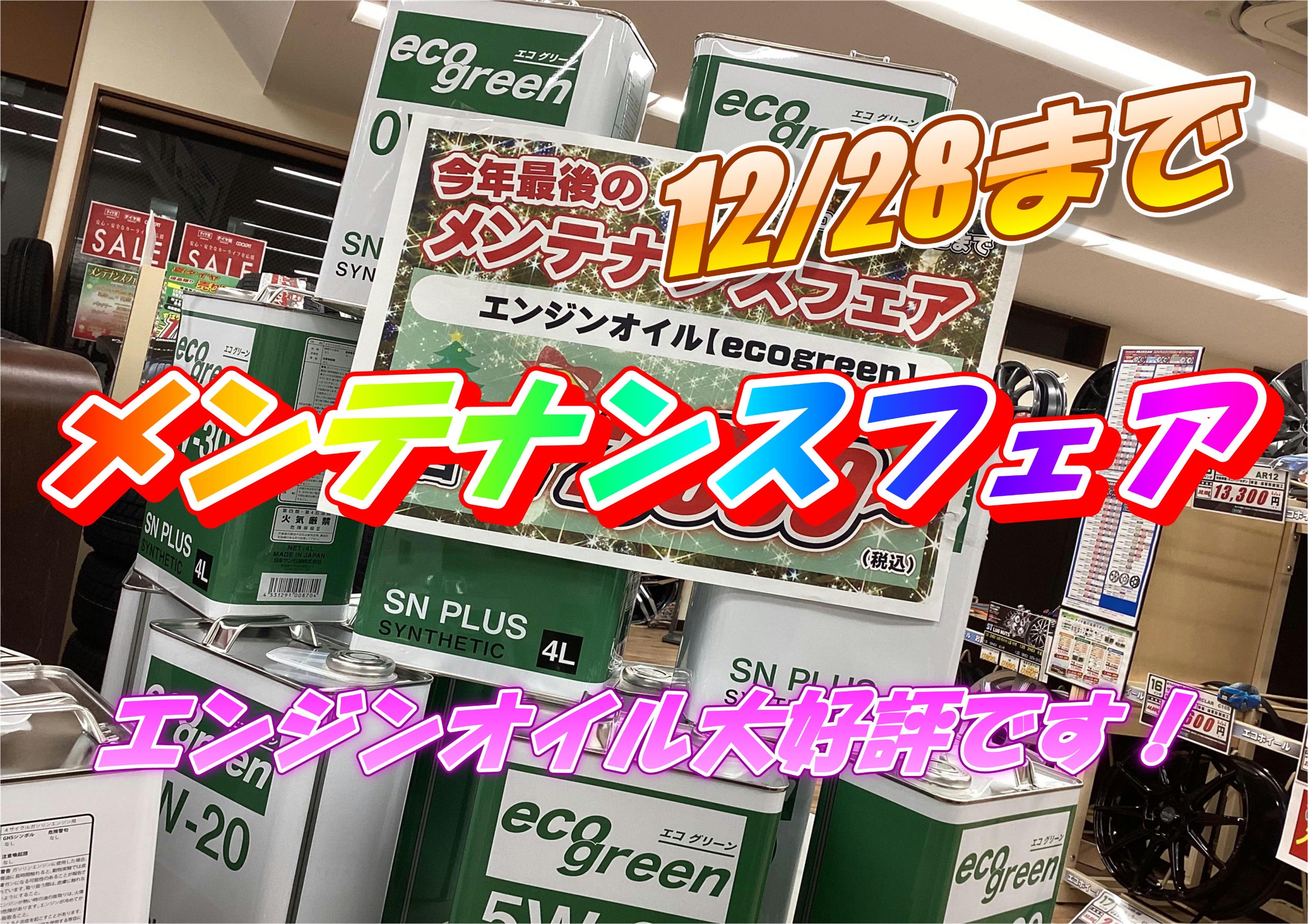 【当店お手頃価格オイル-ecogreen-】メンテナンスフェア明日まで開催です。