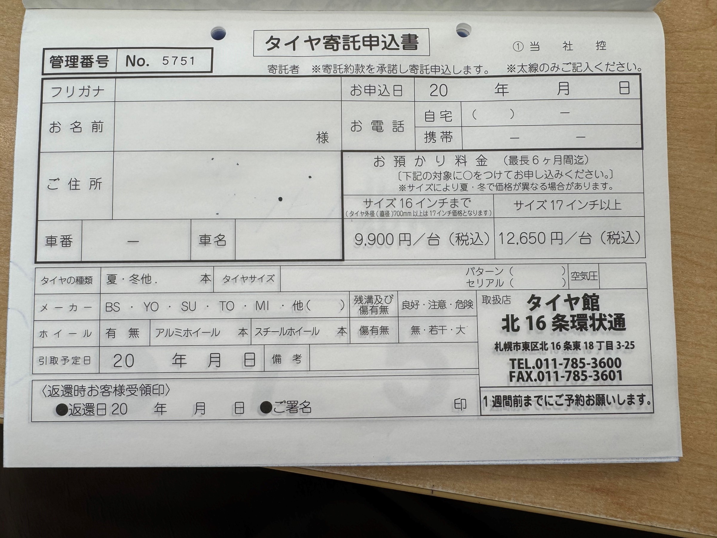 タイヤ館北16条環状通店のタイヤお預かりサービス
